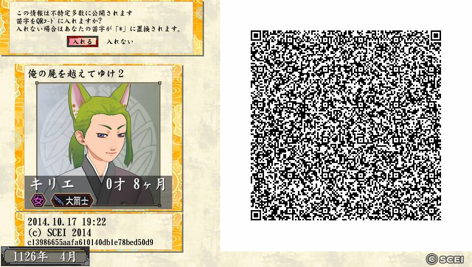 ここからは「養子→氏神」のために作成したキャラなので自習期間中です。養子縁組して育成するか、元服まで休養させてください。